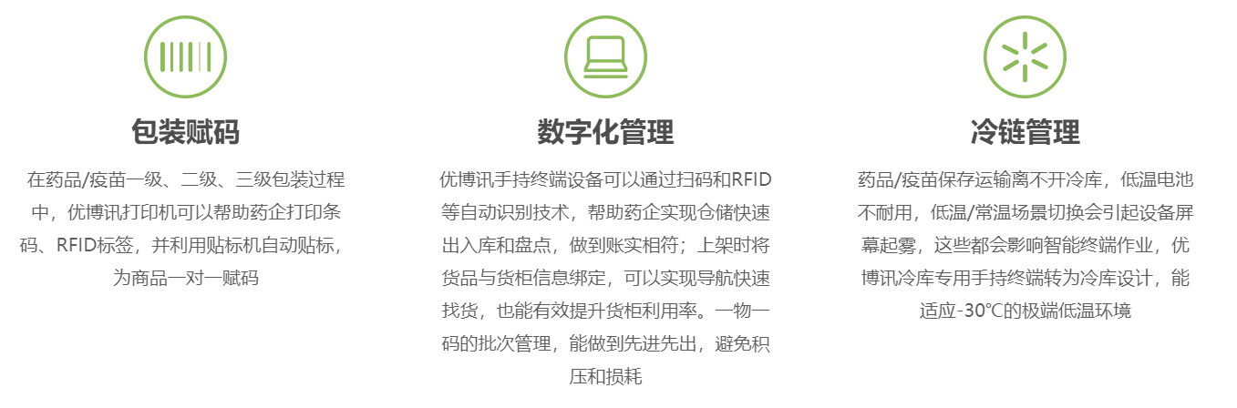 在药品生产领域通过打印机、自动贴标机为药品赋和采集,提升管理的效率,精准率,实现防伪防窜,保障用药和采集,提升管理的效率,精准率,实现防伪防窜,保障用药安全,实现医药供应链信息可视化