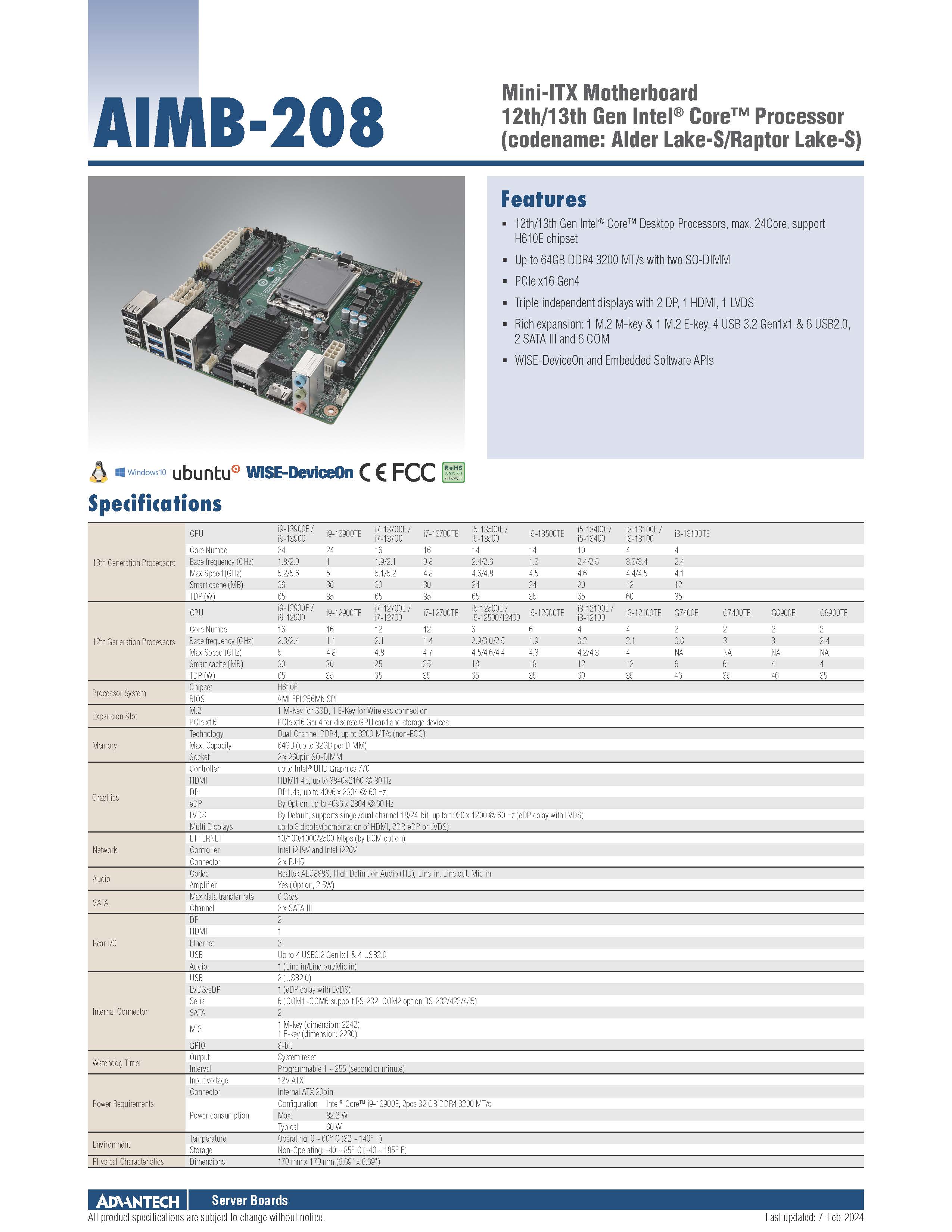 - 支持Intel 第12/13/14代 Core i系列处理器和H610E芯片组