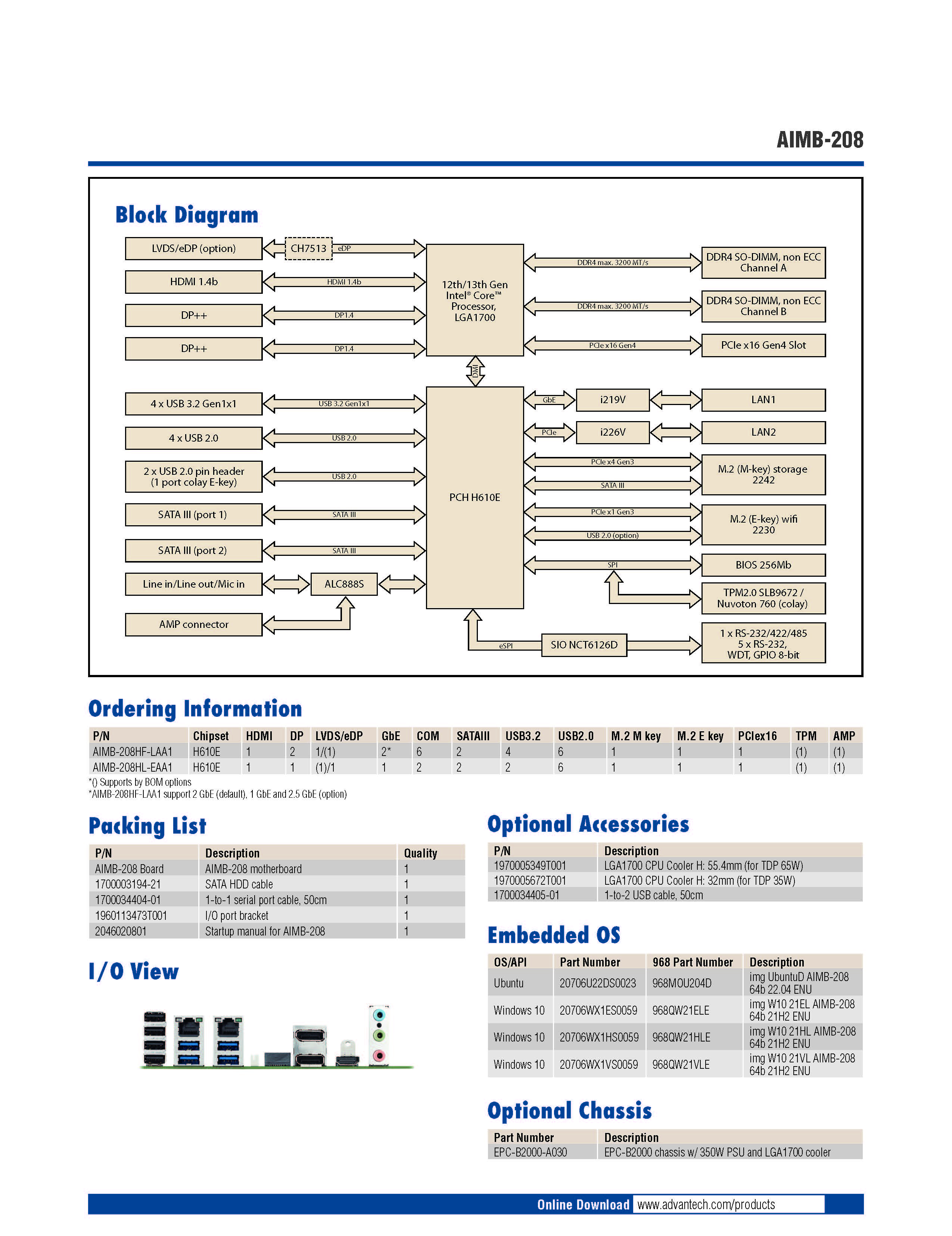- 支持PCIe x16 Gen4,4 x USB 3.2,6 x USB 2.0,6 x COM,2 x GbE LAN,2 x SATAIII,1 x M.2 M key,1 x M.2 E key,TPM 2.0(可选)