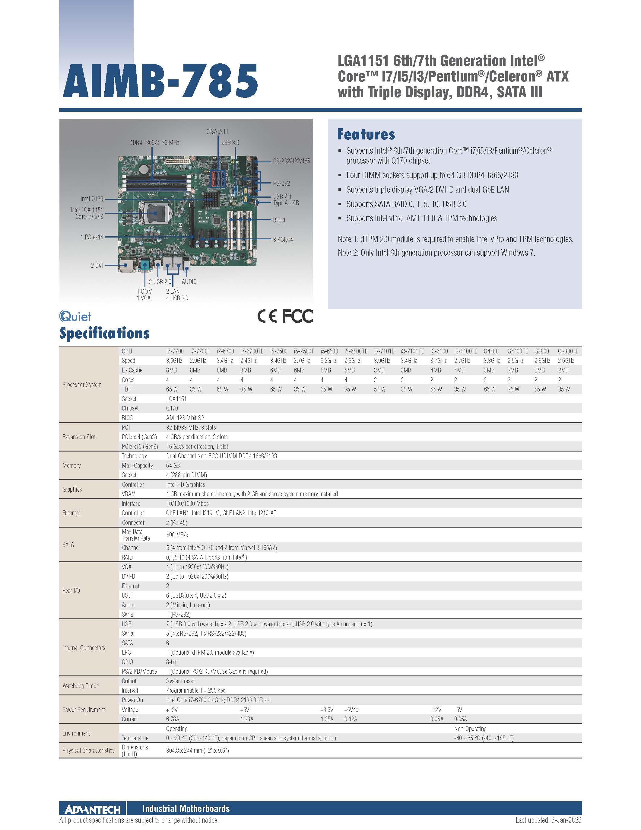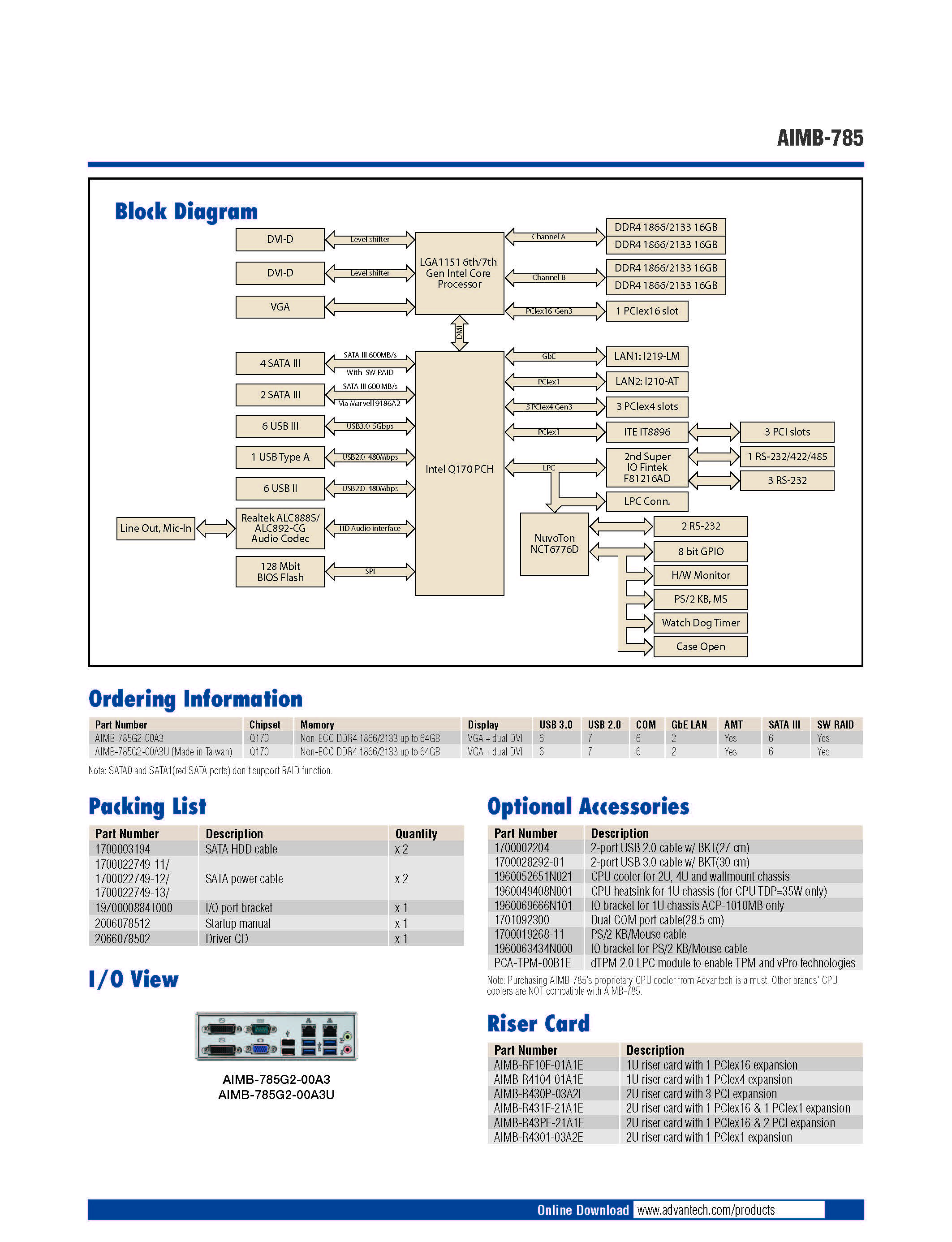 - 支持Intel Core™ i7/i5/i3/Celeron/Pentium处理器,带Q170芯片组