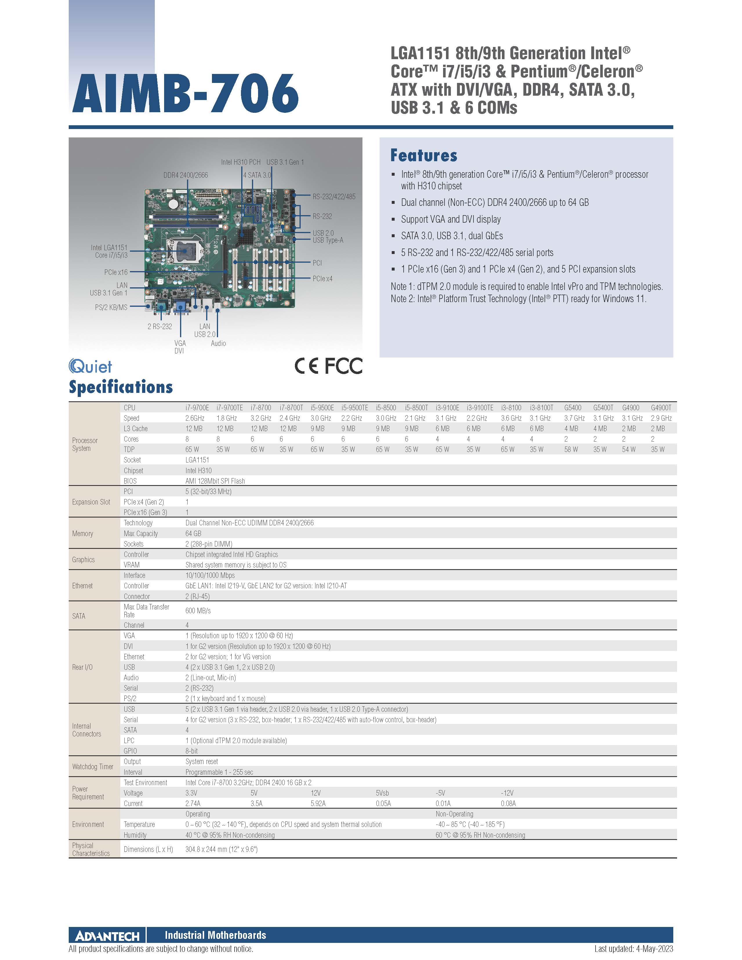 LGA1151第8代Intel® Core™ i7/i5/i3/Pentium®/Celeron® ATX,DVI/VGA, DDR4, SATA 3.0, USB 3.1& 6 COMs