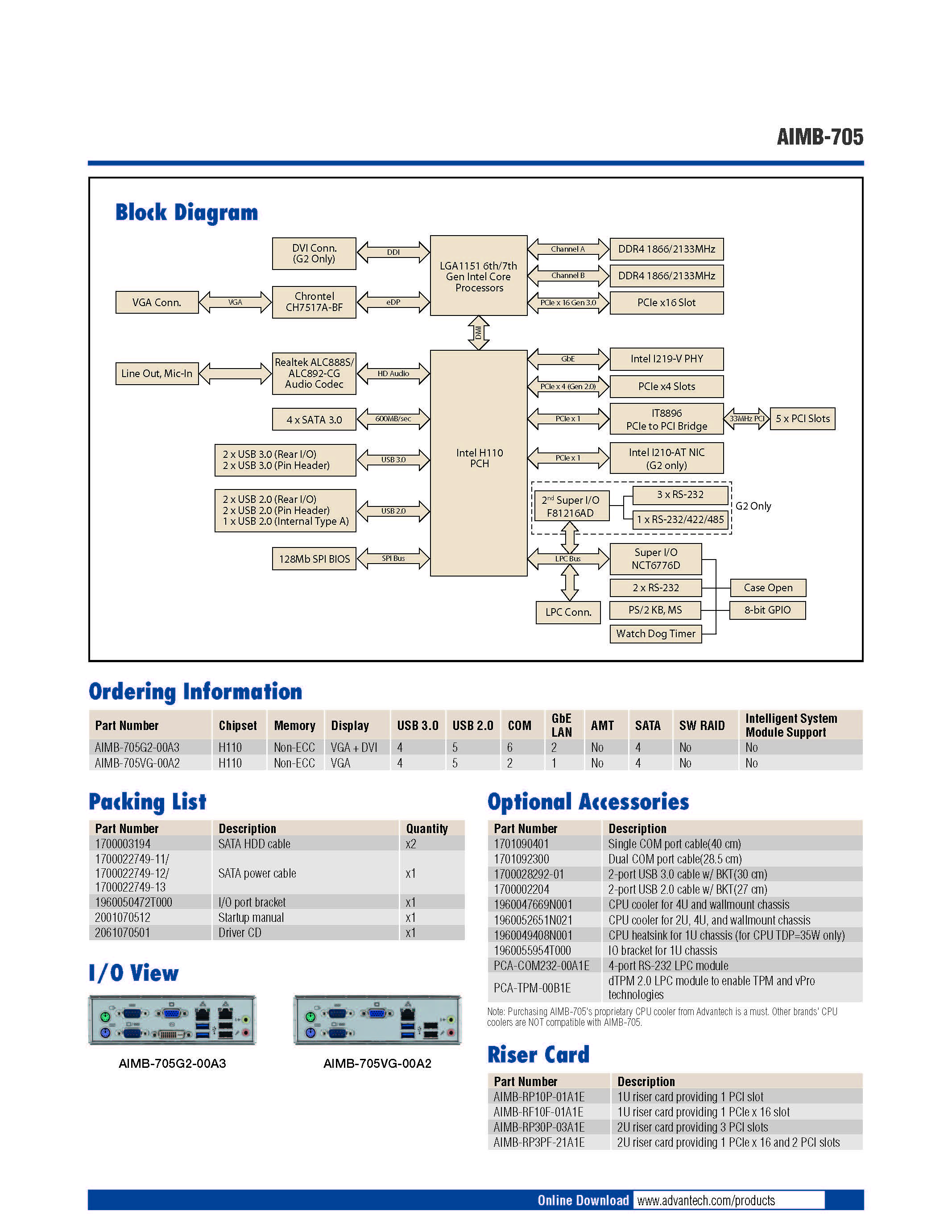 - 1个PCIe x16 (Gen3)和1个PCIe x4 (Gen2),和5个PCI扩展槽