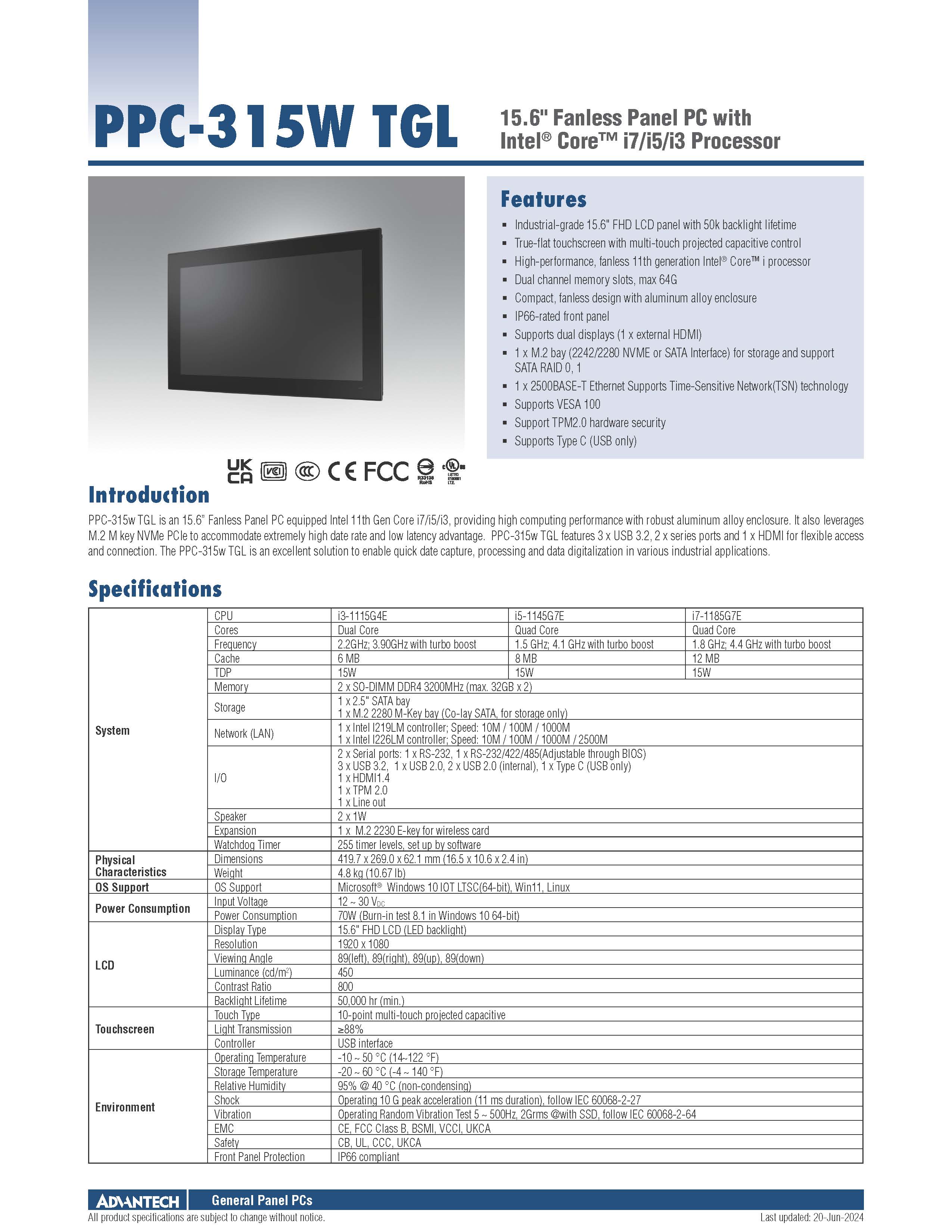 - 工业级15.6" FHD LCD屏,50K背光寿命