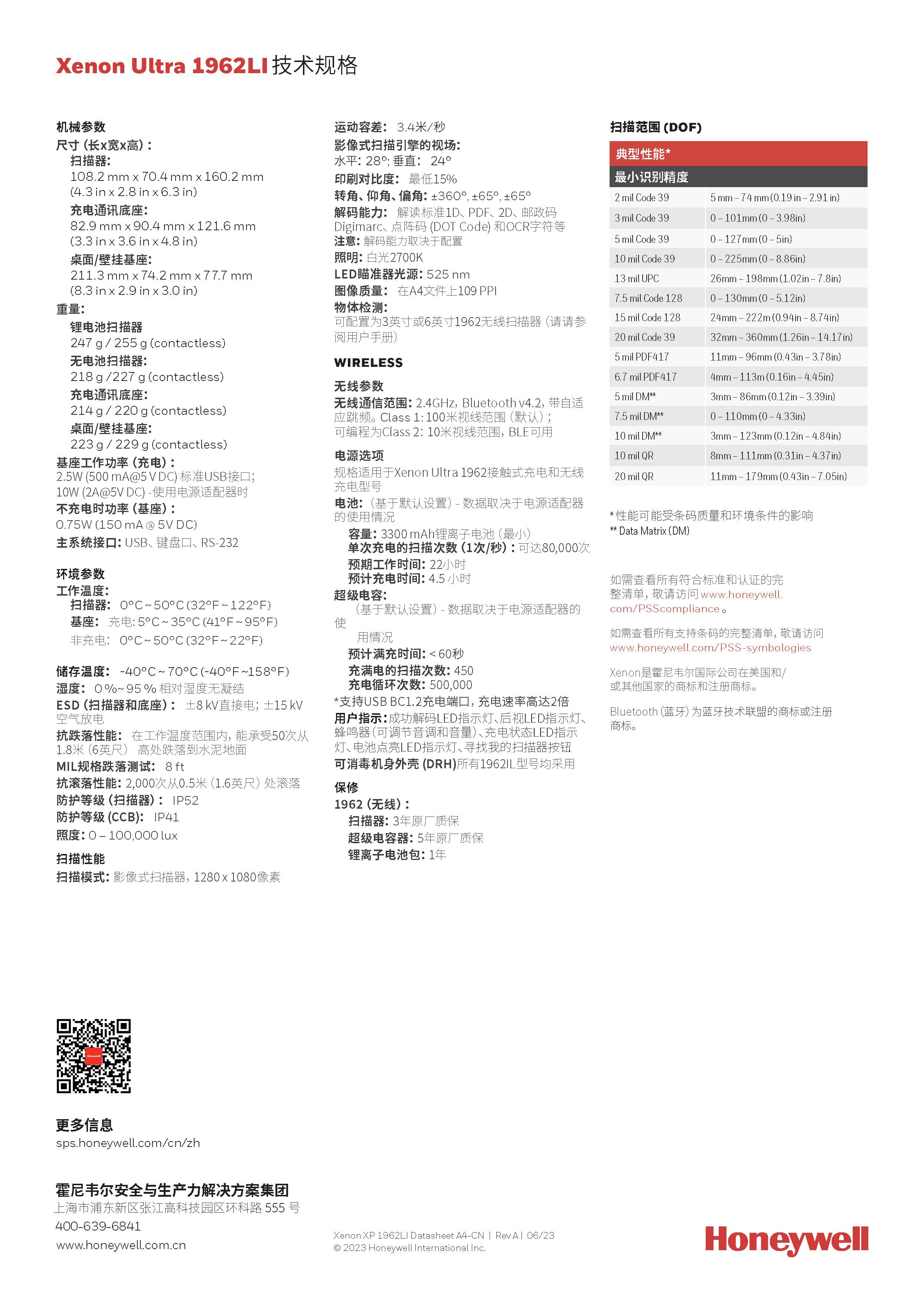 霍尼韦尔Honeywell Xenon Ultra 1962LI 扫描器