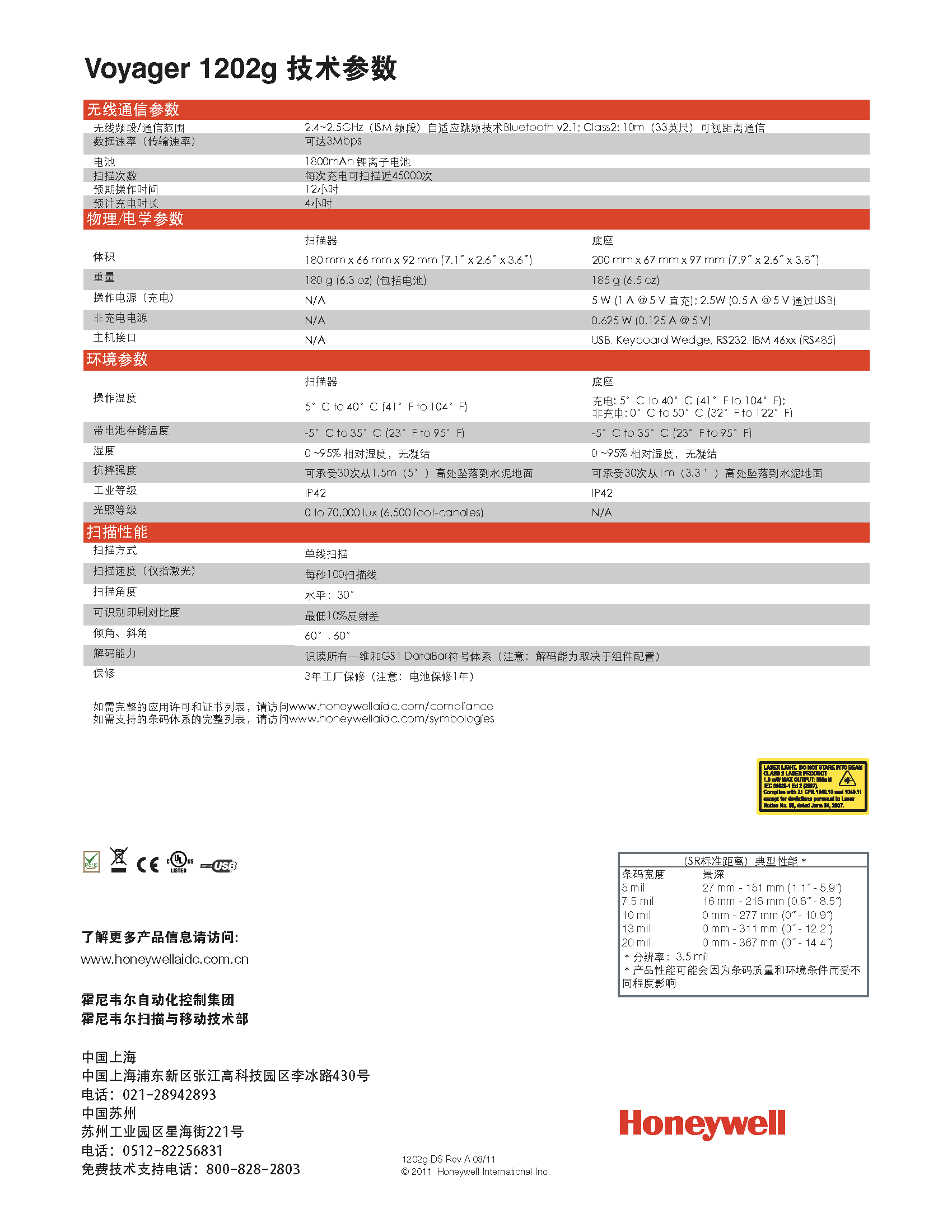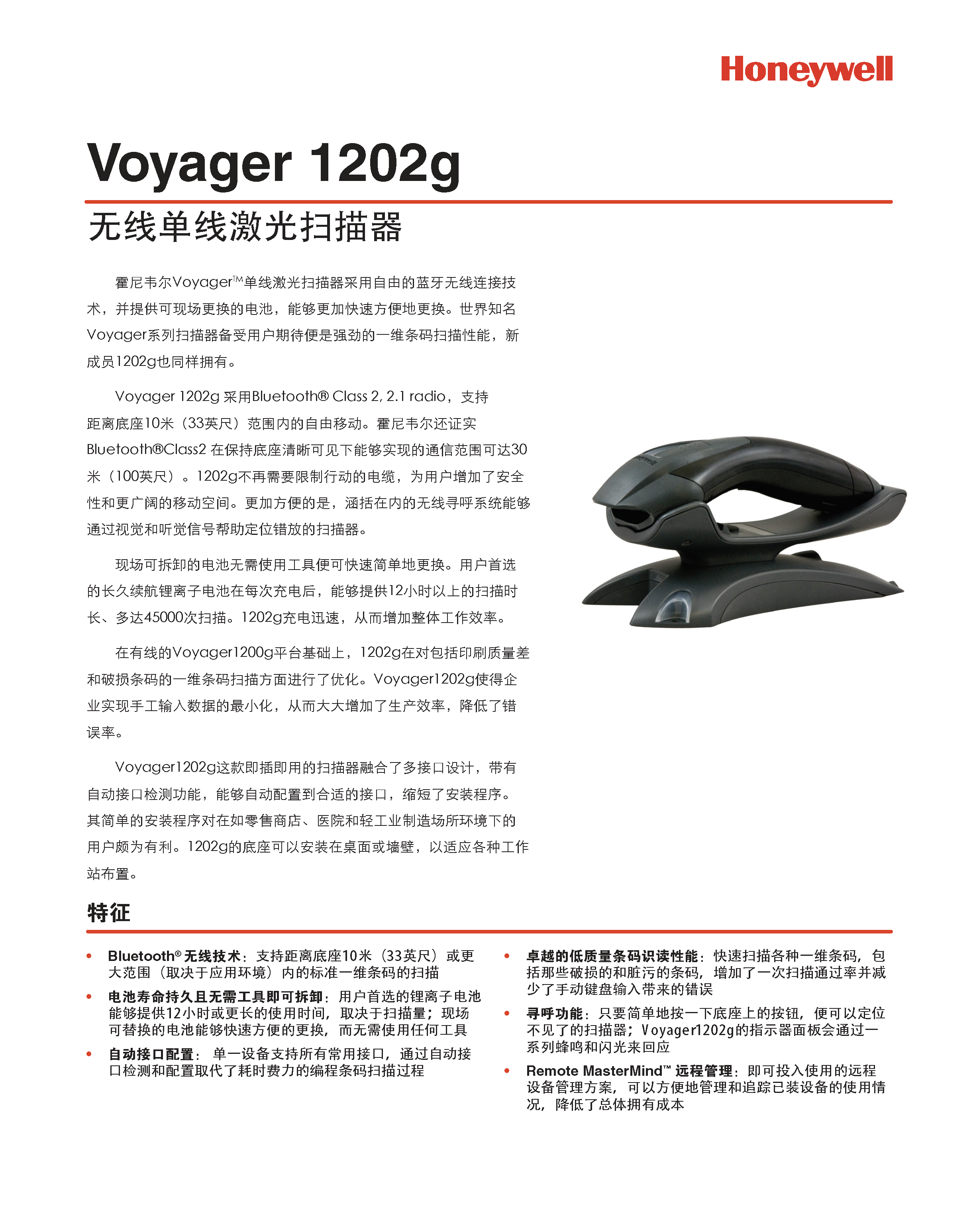 霍尼韦尔 Honeywell Voyager 1202g 无线一维条码扫描器