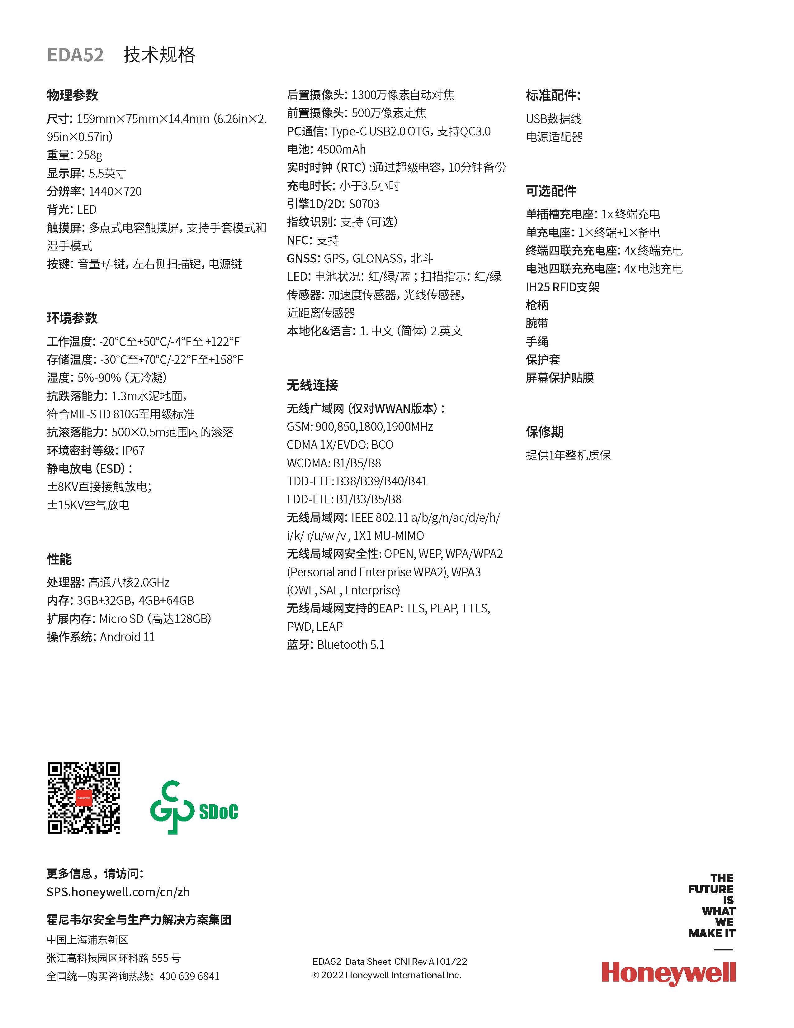 EDA52移动数据终端是霍尼韦尔Scan Pal系列新一代的企业级产品,是一款综合性能高、适用领域广的安卓产品。拥有高速流畅的运转性能,大容量存储,高性能的霍尼韦尔扫描引擎,以及稳固的4G全网通和Wi-Fi双频段的数据连接能力。