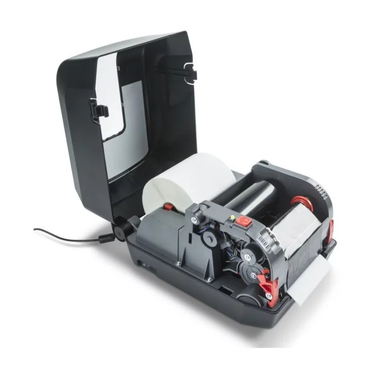 该精简 PC42T 热转印台式打印机易于安装且打印速度快,是最大宽度 110 毫米(4.3 英寸)的介质的经济型选择。该 PC42t 打印机可容纳较大尺寸碳带,可以在补充介质前打印更长时间,从而提高标签工作流程的生产率。
