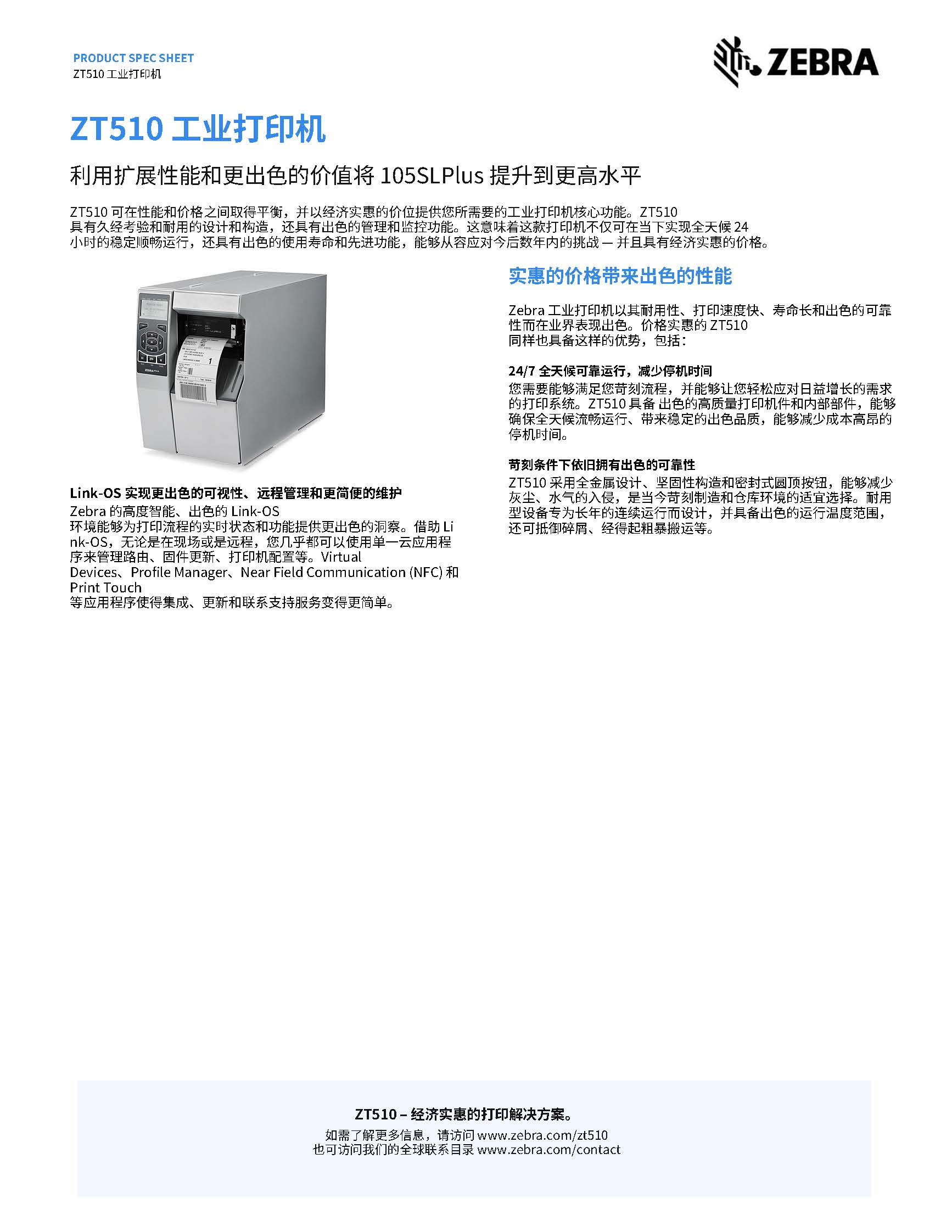 ZT510 基于出色的 105SLPlus 打印机,能够以实惠的价位提供满足您需要的工业打印机关键功能。ZT510 采用可靠、耐用的设计和结构,同时增加了先进的管理和监控功能。这意味着这款打印机不仅可在当下实现全天候的稳定顺畅运行,还具有出色的使用寿命和先进功能,能够从容应对今后数年内的挑战 — 并且具有经济实惠的价格。